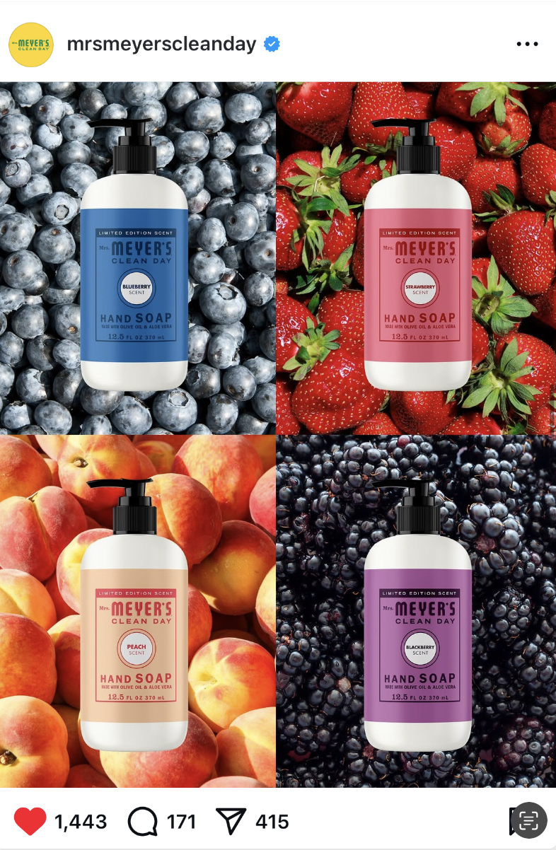 For the debut of Mrs. Meyer’s Limited-Edition Blueberry, the designer and I concepted an entire day in the life content strategy for social—from mood boards to shot lists to final captions. We built the visual and verbal world from scratch, crafting a summer story that teased the scent before it even hit shelves. The goal was to make Blueberry feel like summer itself: playful, juicy, fleeting—a scent you’d want to capture before the season passed.